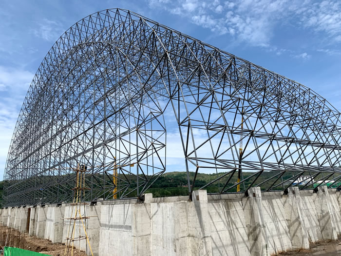 (2)网架加工前应对现场尺寸进行复测,确认无误后方可进行加工、安装;网架制作、运输、安装应遵守《空间网格结构技术规程》JGJ7-2010、《钢网架莱芜螺栓球节点》JG/T 10-2009、《钢网架莱芜螺栓球节点用高强度螺栓》 GB/T 16939-2016、《莱芜钢结构莱芜工程莱芜施工规范》 GB50755-2012、《莱芜钢结构莱芜工程施工质量验收标准》 GB50205-2020。